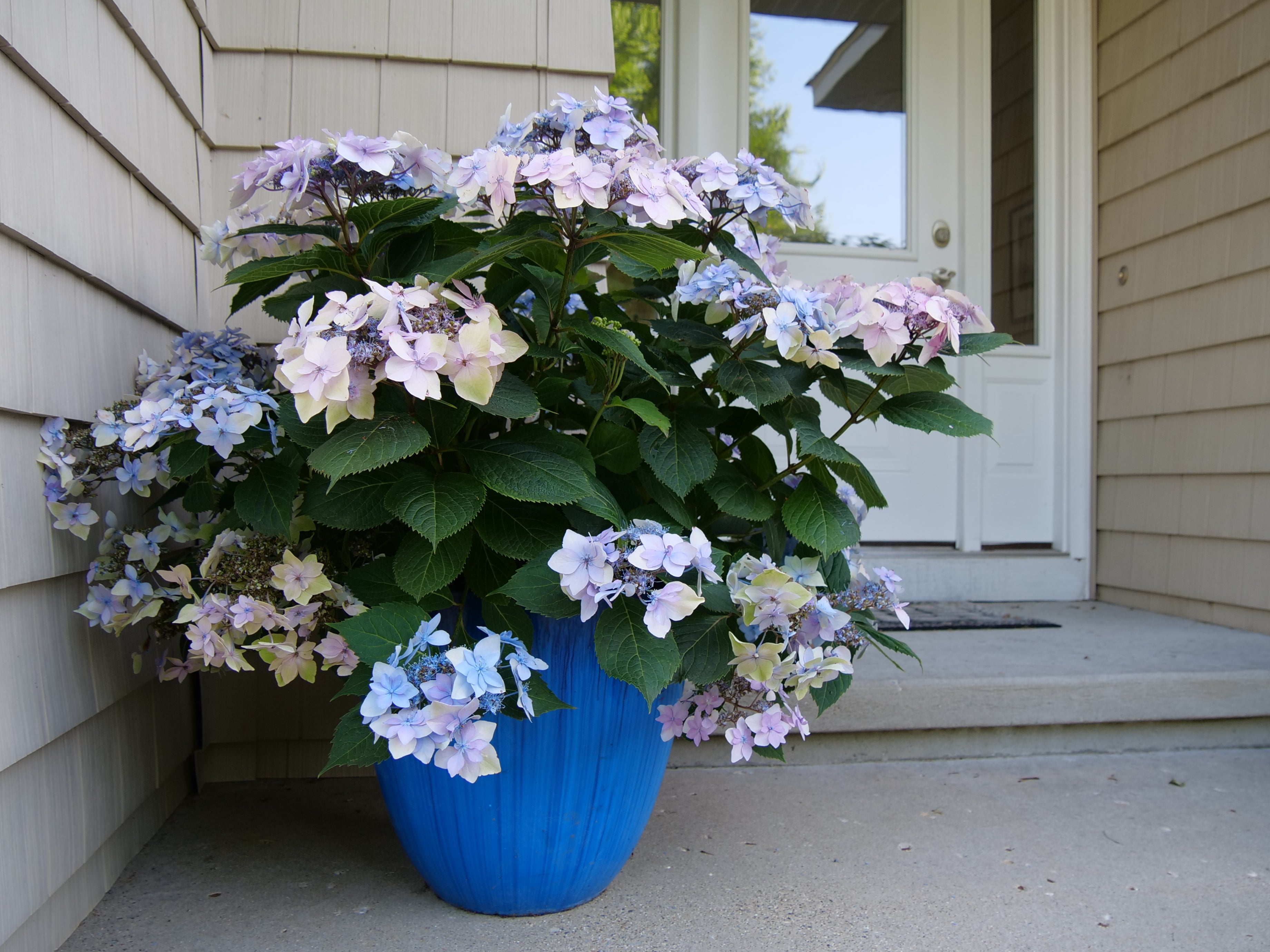 Hydrangea macrophylla, also known as bigleaf hydrangeas, generally have big round colorful flower heads although some varieties have lace cap flowers too. The colors range from a brilliant blue to a vivid pink depending on the acidity of the soil they are planted in, Acidic soil (PH lower than 6.5) results in blue flowers. Alkaline soil (PH above 7.5) results in pink flowers. A neutral PH (6.5 to 7.5) will give you a mix of both or purple blooms. To increase acidity for blue flowers, you can add aluminum sulfate to your soil. To get pink flowers in acidic soil, you can amend it with lime. You can find both at any local garden center. Be careful not to overdo it to avoid damaging the plant and remember it is a gradual process.