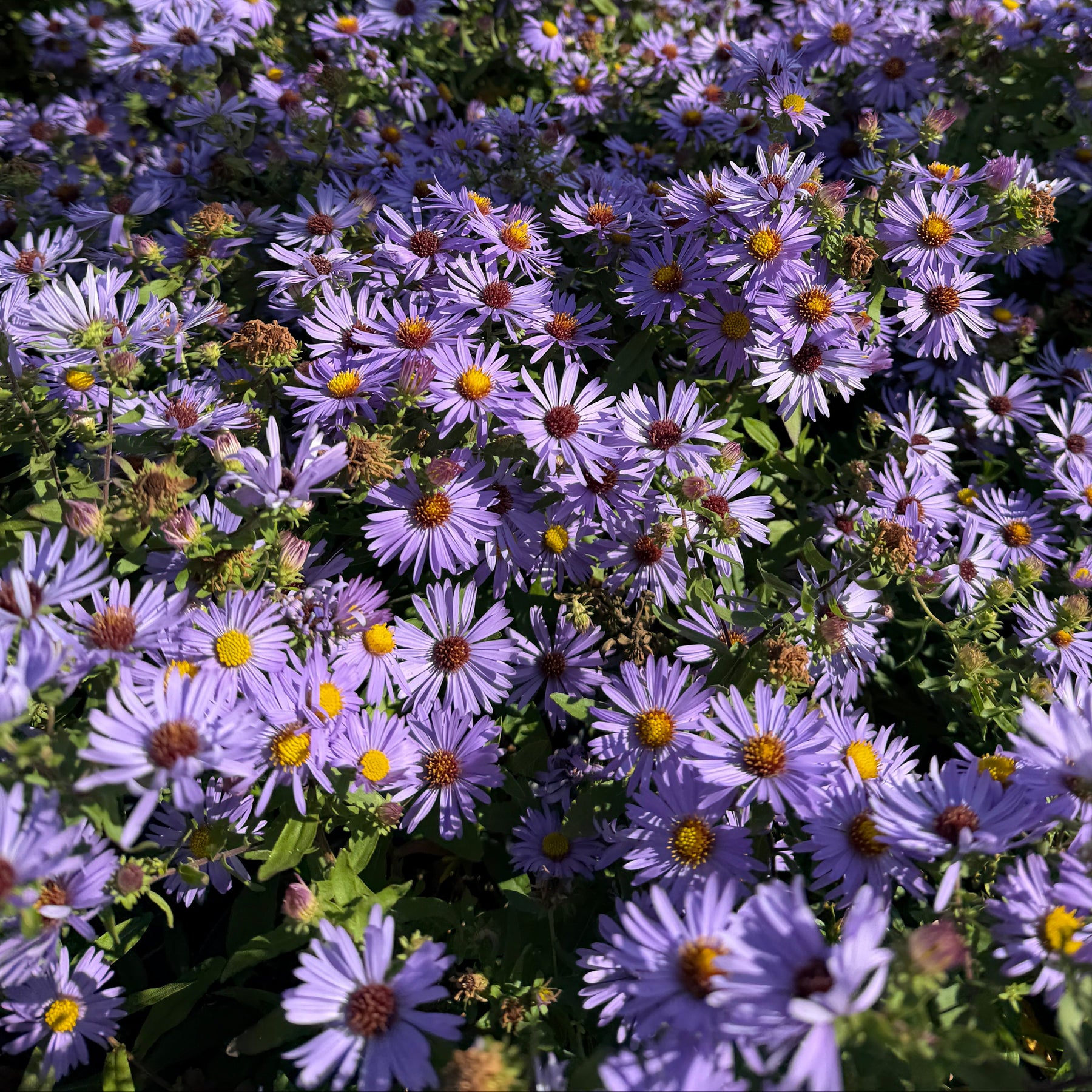 Twilight Sky Aromatic Aster dazzles with its vibrant purple-blue petals and sunny yellow centers, creating a stunning contrast. This hardy perennial thrives in sunny spots, attracting butterflies and bees with its sweet fragrance. Perfect for adding a splash of color to gardens or borders, it blooms from late summer into fall, offering a long-lasting display.