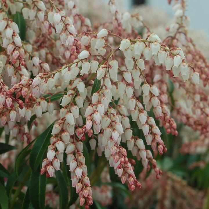 Dark red flower buds persist through winter, opening to soft pink flowers in spring. The evergreen foliage turns a rich mahogany-red in cold weather, providing interest during the dormant season.