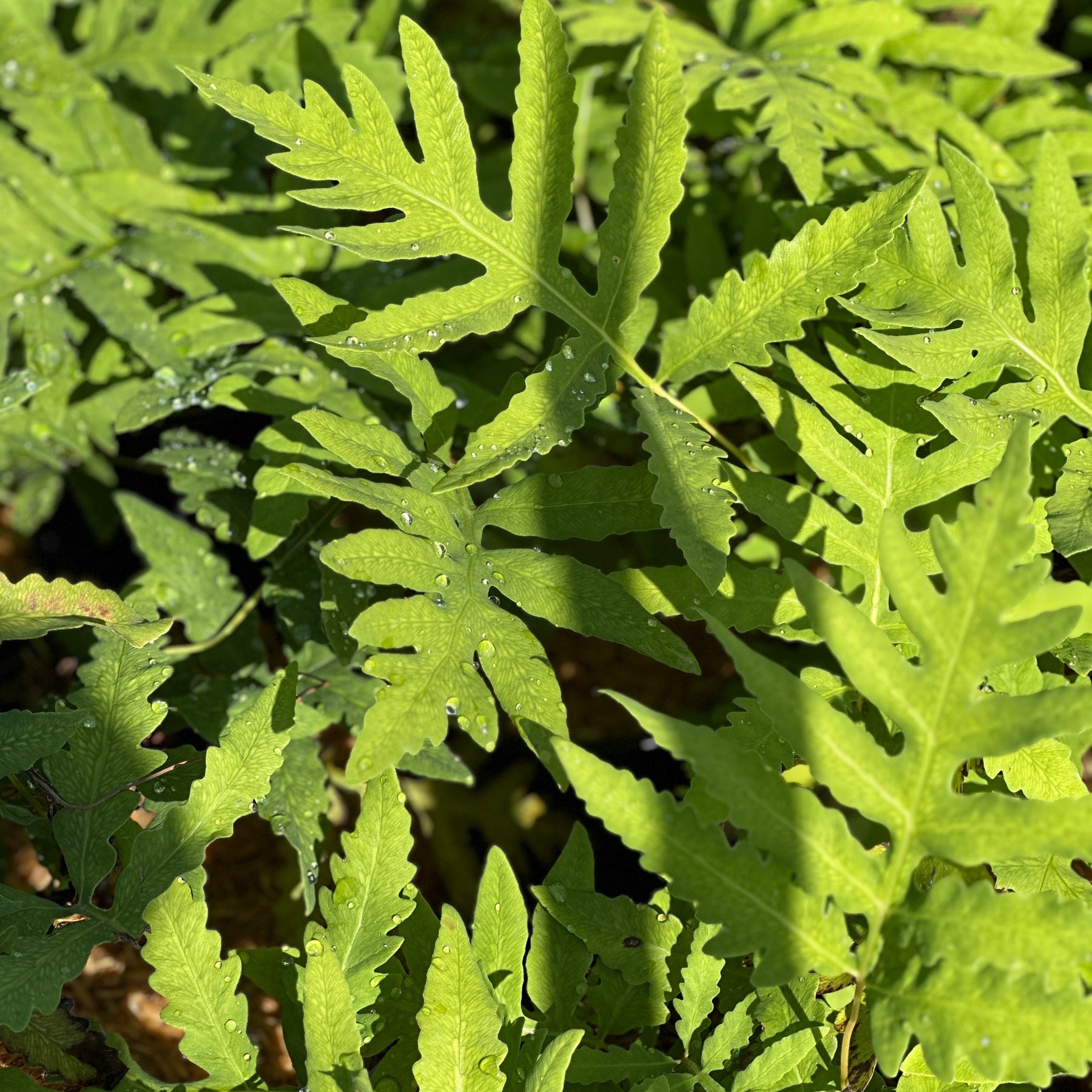 Sensitive Fern is noted for its unique, delicate appearance, with fronds that are quick to respond to changes in temperature. This fern thrives in moist, shady environments, making it a perfect choice for woodland gardens or damp areas where its lush greenery can flourish.