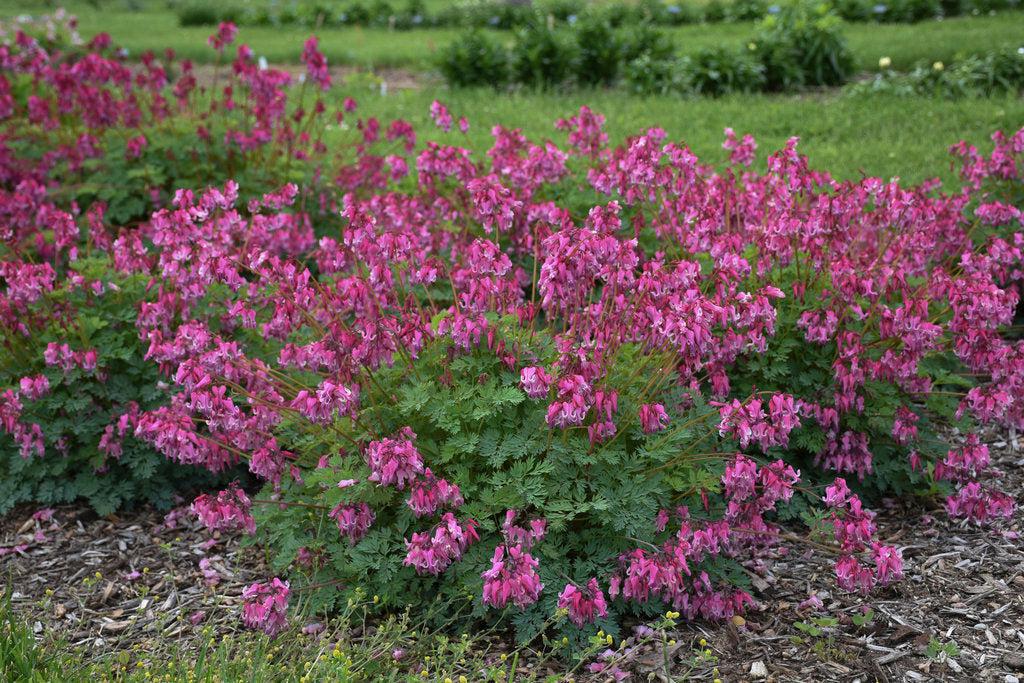 An alpine-type bleeding heart that's worthy of the Proven Winners name! 'Pink Diamonds' explodes with flowers in late spring to early summer and blooms throughout the season. Pink flowers open light pink and show a two-tone effect. A medium-sized clump of fine, fern-like blue-green foliage.