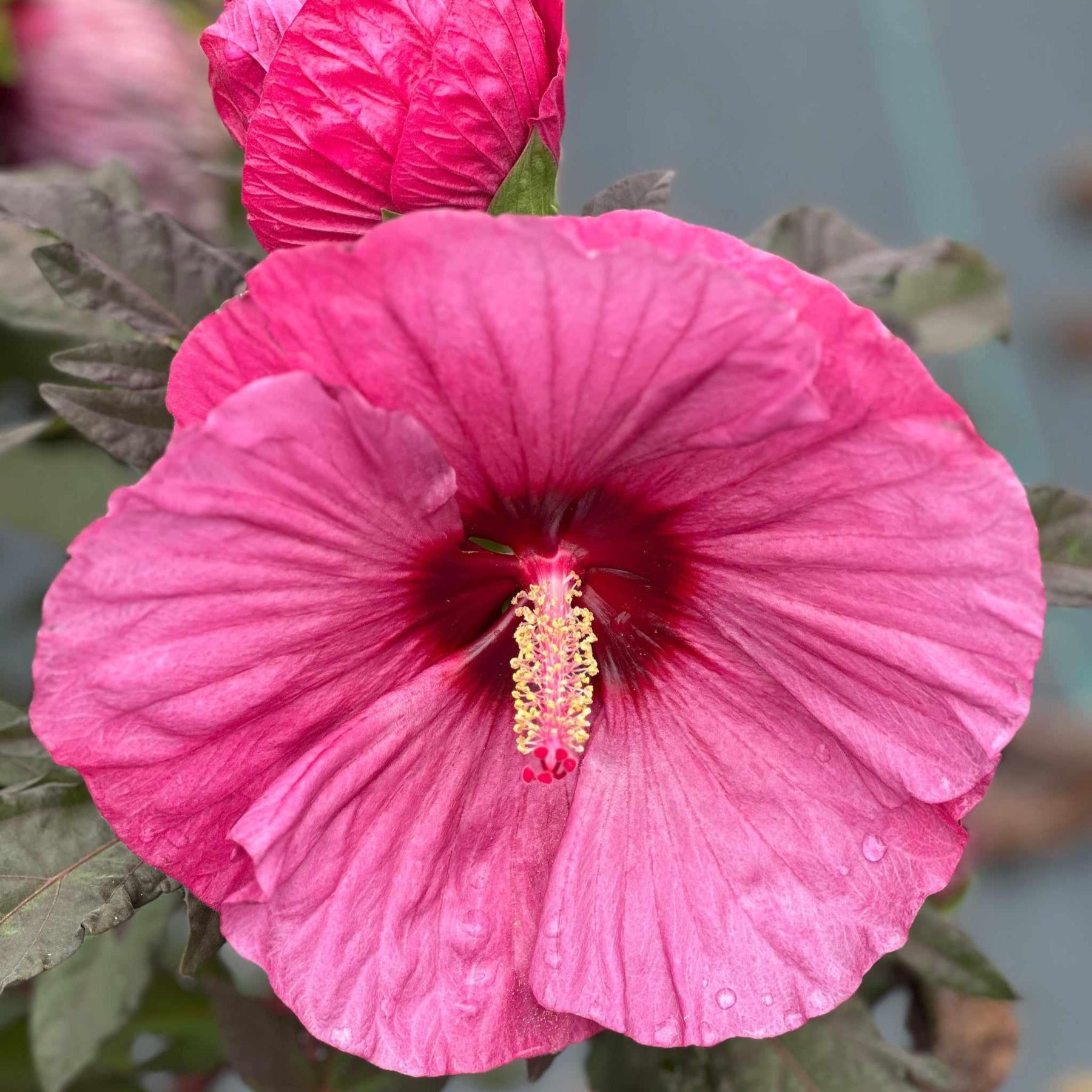 Berry Awesome Rose Mallow boasts stunning, dinner-plate-sized blooms in a rich, vibrant pink with a deep red eye. Its lush, green foliage provides a perfect backdrop, making the flowers pop even more. This hardy perennial is a showstopper in any garden, attracting butterflies and hummingbirds with its striking appearance. Easy to care for, it thrives in sunny spots and adds a tropical flair to your landscape.