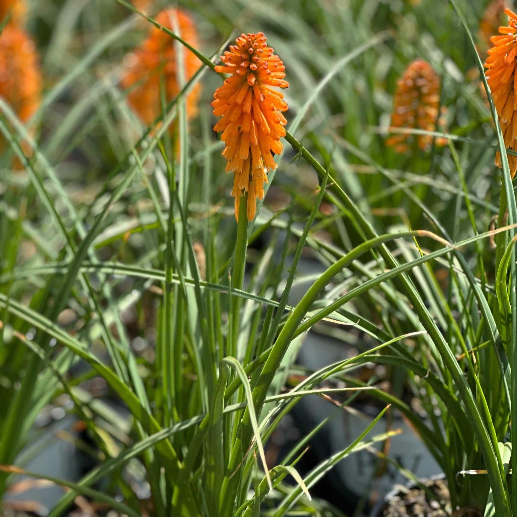 Bring unique drama to your landscape with the spiky flowers and upright habit of this perennial. Bright orange flowers are produced over grass-like foliage.