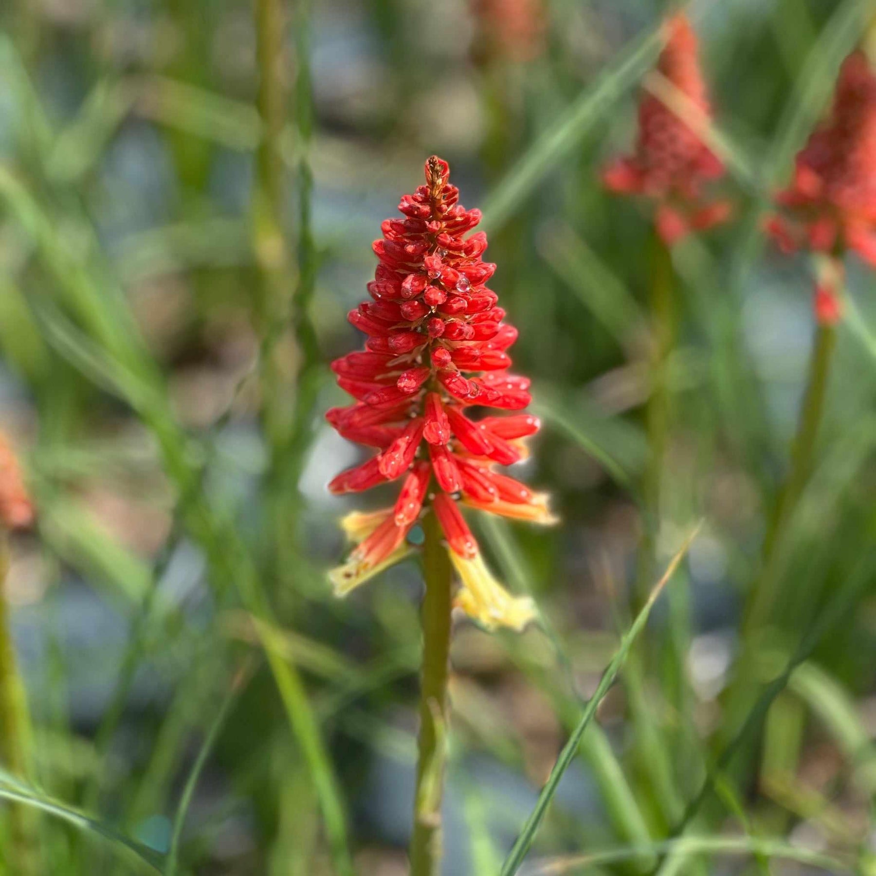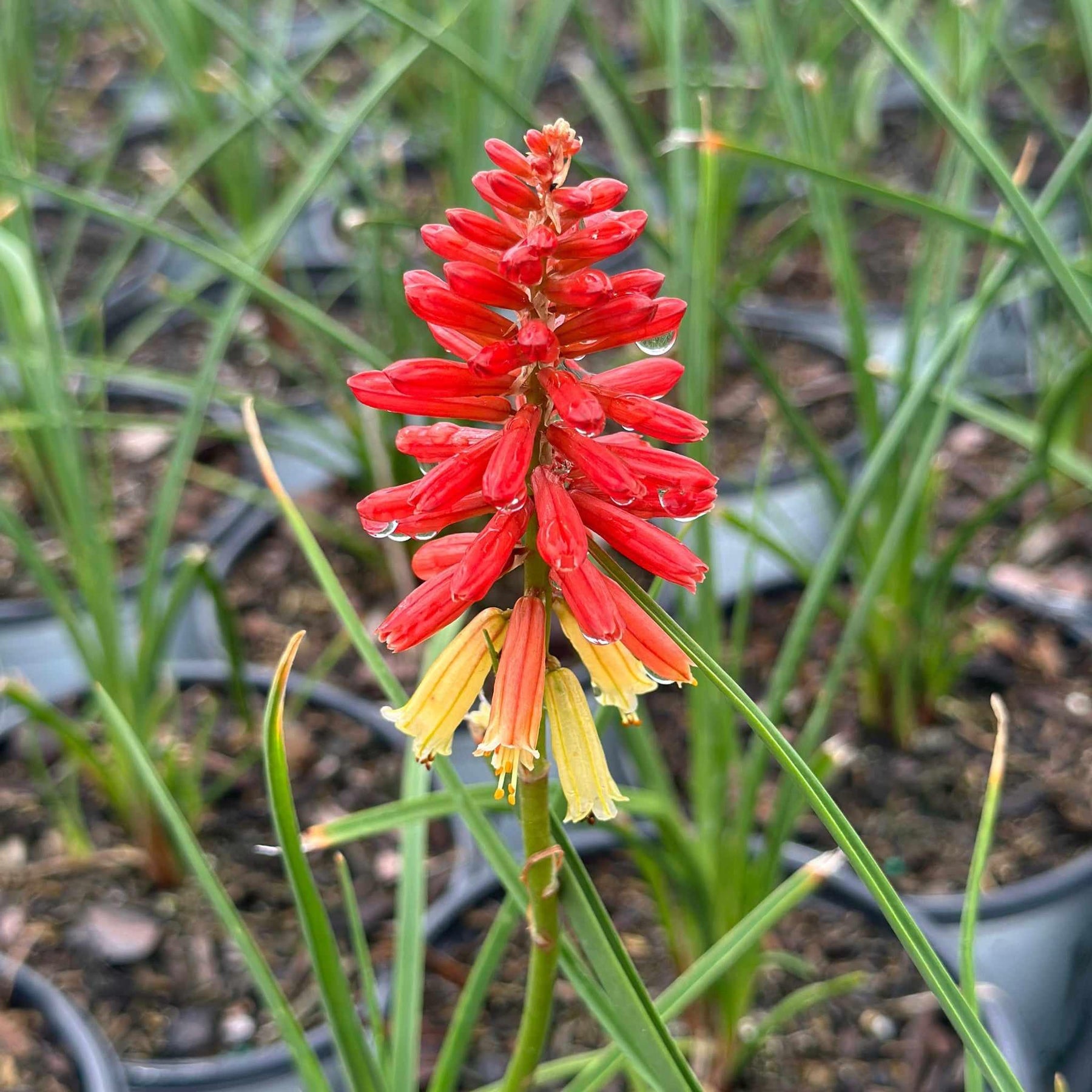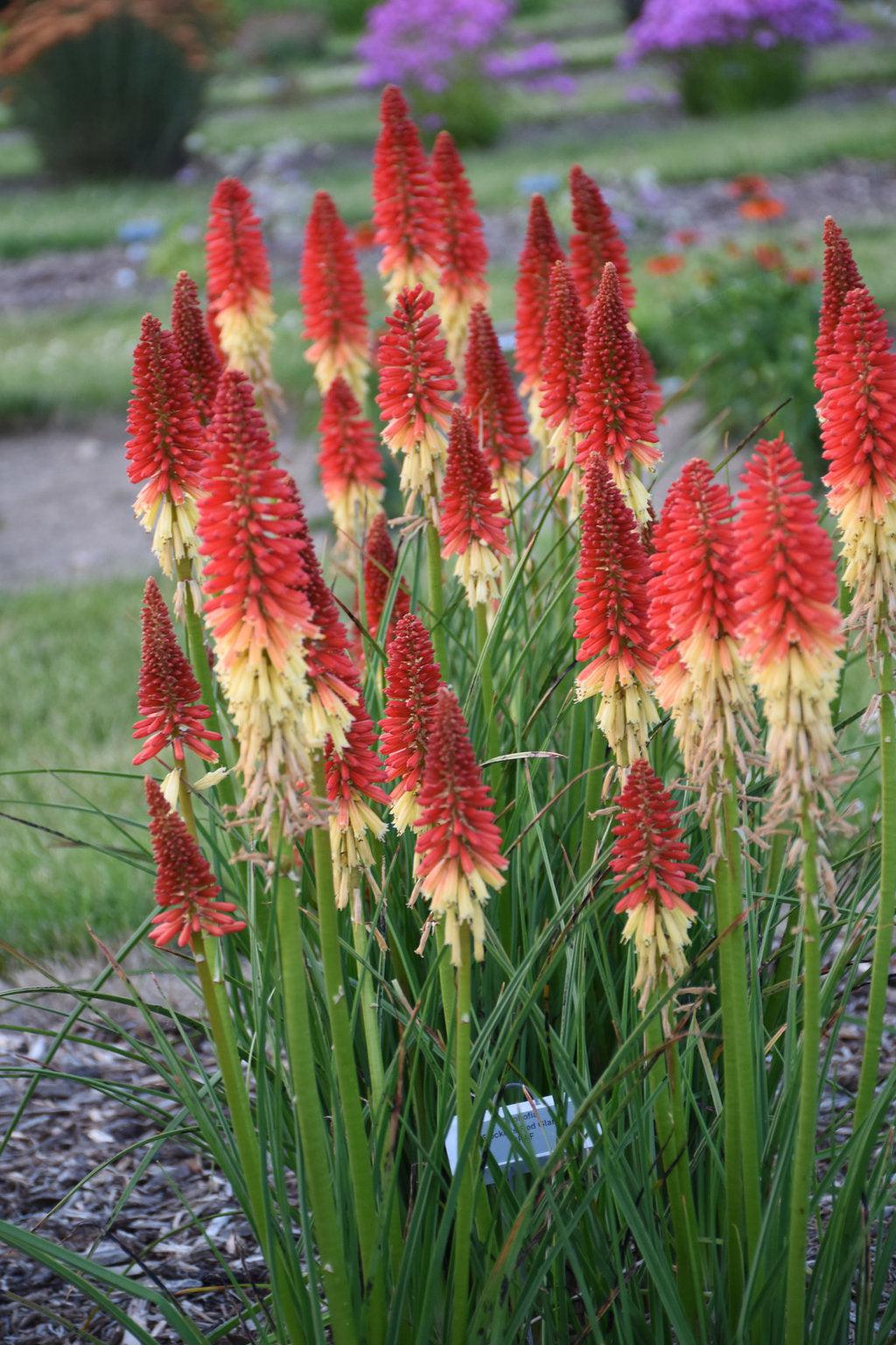 Bring unique drama to your landscape with the spiky flowers and upright habit of this perennial. Vibrant warm buds open to creamy peach flowers over grass-like foliage.