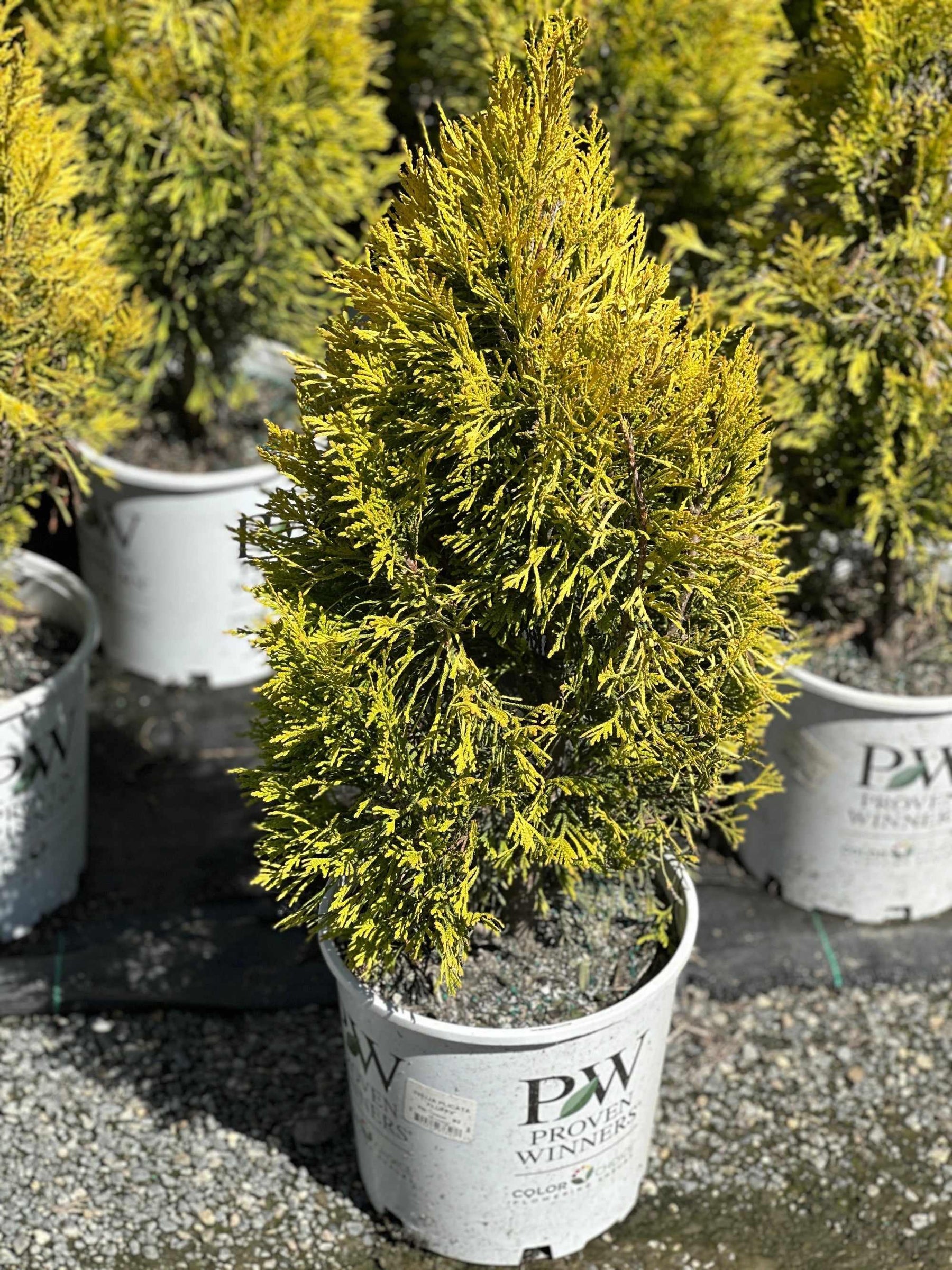 You'll love what Fluffy Western arborvitae does for your landscape! This unique evergreen has soft, bold foliage that emerges yellow and gives the plant a halo-like effect in the landscape. Its cheerful color persists even in winter. It naturally grows with a pyramidal shape that adds structure and shape to the garden. Thanks to its distinctive habit and colorful foliage, Fluffy makes a true statement in the landscape. Try it as a specimen, or pair them at a door or entrance for a dash of fun formality.
