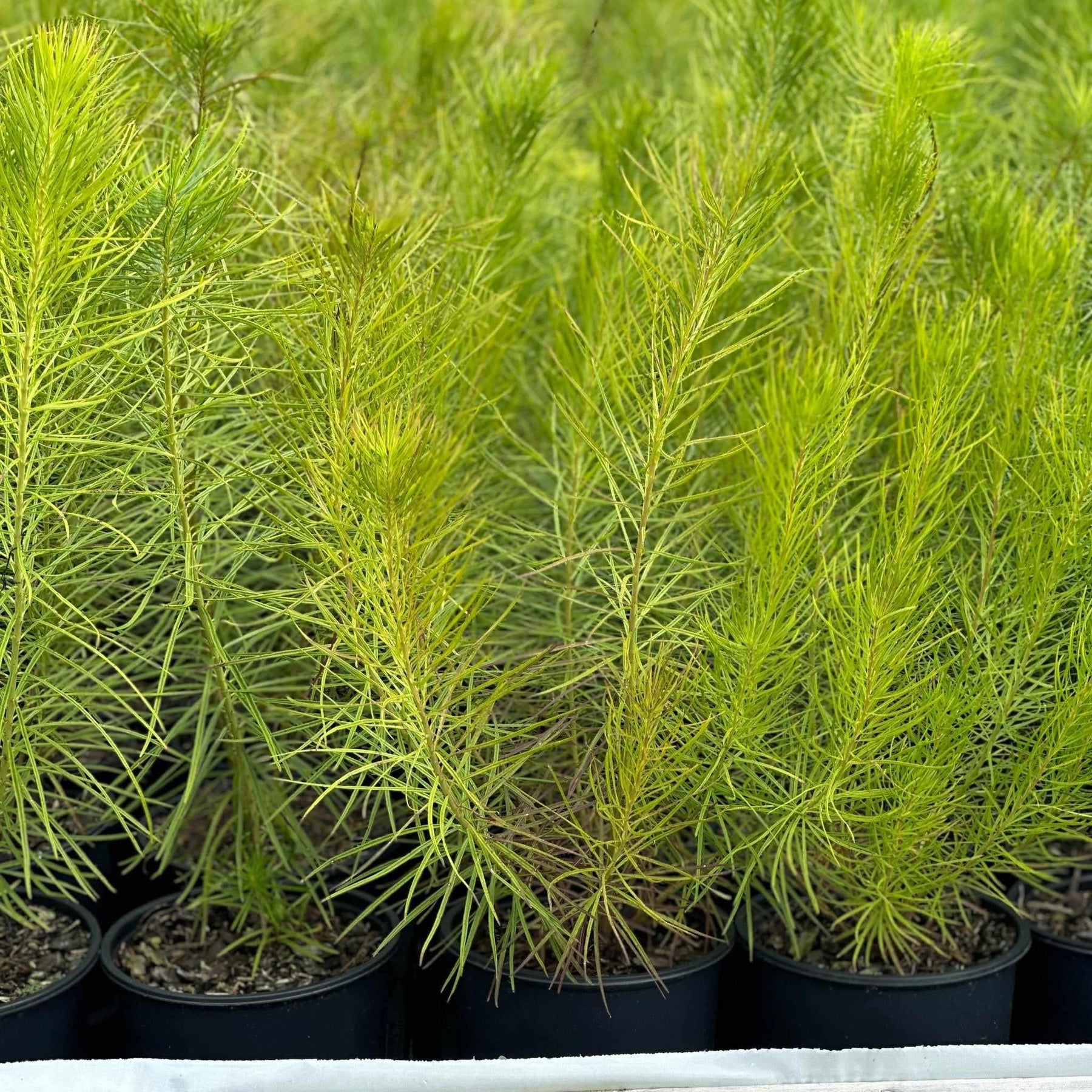 Amsonia hubrectii, known for its fine-textured, feathery foliage, turns a striking gold in the fall. This perennial grows up to 3 feet tall and is covered with pale blue, star-shaped flowers in the spring, adding a soft, airy quality to the garden.