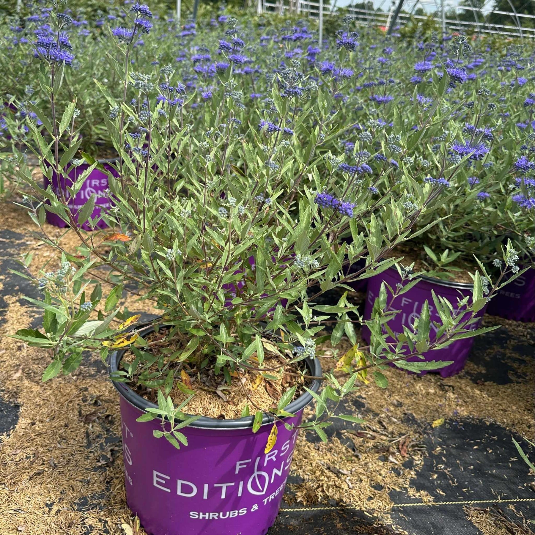 Sapphire Surf® Bluebeard is a stunning shrub with vibrant blue flowers that bloom in late summer, attracting bees and butterflies. Its aromatic, silvery-green foliage adds a touch of elegance to any garden. Perfect for sunny spots, it thrives in well-drained soil and is drought-tolerant once established.
