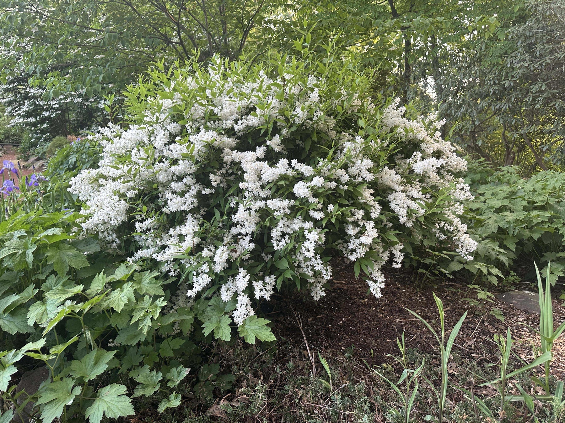 Nikko Deutzia is known for its compact growth habit and masses of white flowers that cover the shrub in late spring. It reaches about 2 feet in height, perfect for use as a low hedge, in foundation plantings, or in front of taller shrubs where its profuse blooming can be appreciated.