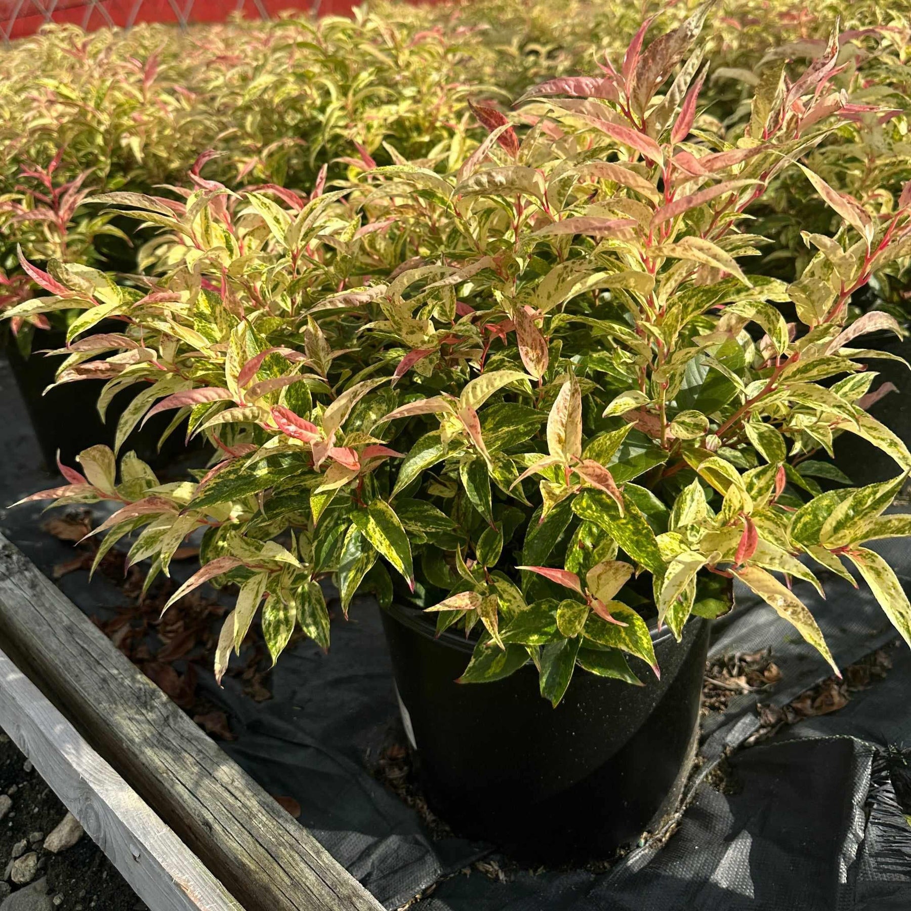 Rainbow Leucothoe features variegated foliage that changes from pink to white and finally to green. This colorful shrub is ideal for brightening shaded areas or for creating interest in woodland gardens, where its changing colors can provide visual delight throughout the seasons.