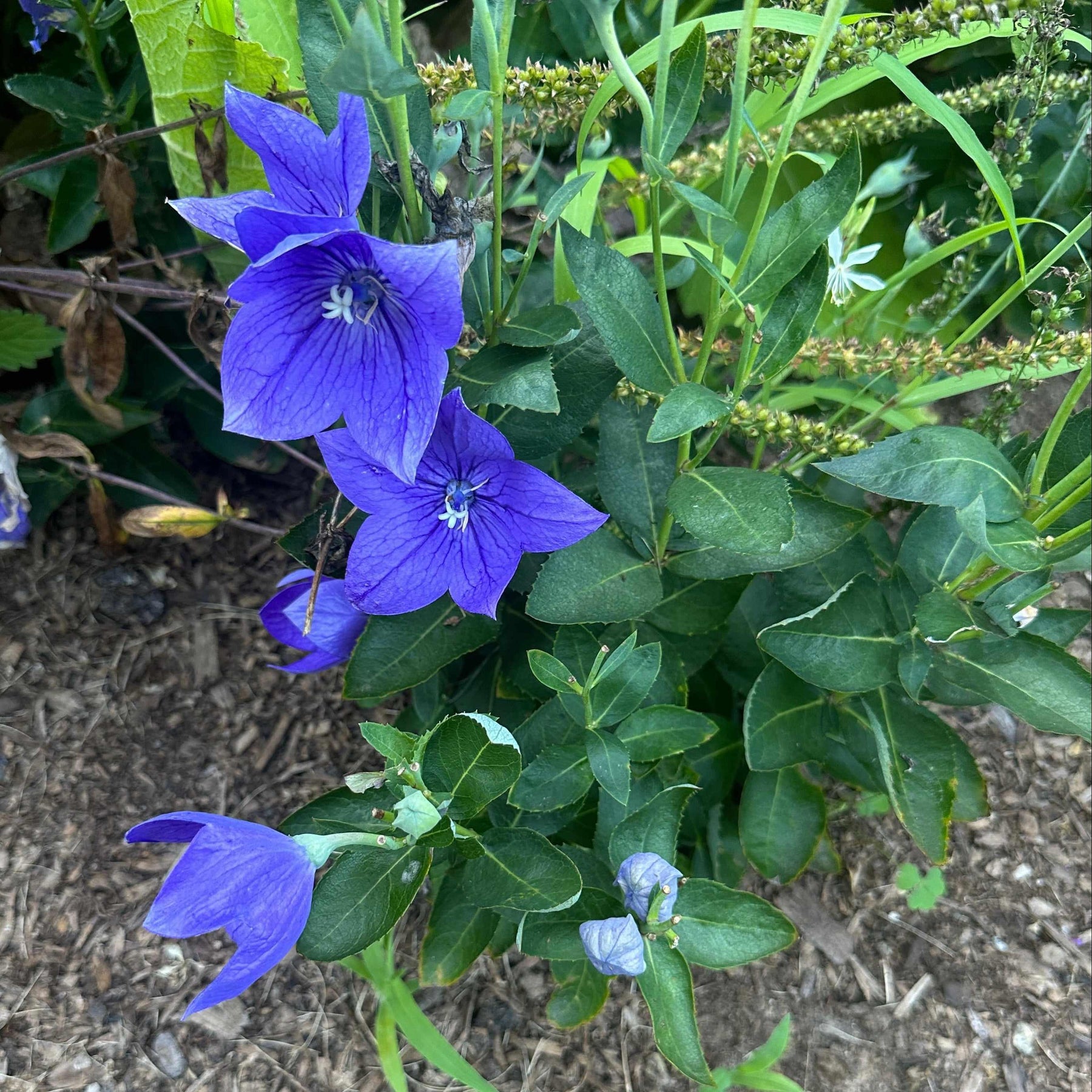 Astra Blue Dwarf Balloon Flower blooms with vibrant blue, balloon-shaped buds that open to star-shaped flowers. This compact perennial is perfect for front of border placements or container gardens, where its striking blooms can add a pop of color.